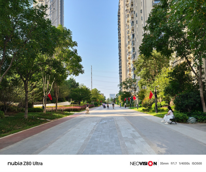 实际体验来看,努比亚Z80 Ultra着实堪称街拍神器,其核心武器之一便是这颗35mm人文主摄。与一英寸主摄相比,它无需变焦裁切,直出的照片在构图完整性和清晰度上更具优势。在白天的拍摄场景中,这颗35mm人文主摄能够呈现出非常自然的构图和优秀的色彩还原能力,拍摄出的照片具有极高的清晰度和丰富的细节。无论是人物的面部表情还是街景中建筑的细节,都能被精准地捕捉并呈现出最佳的视觉效果。